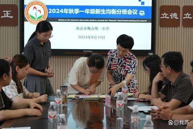 8月10日,南京市梅山第一小学举行了“2024年秋季一年级新生均衡分班”会议。分班会议由该校教学副校长周泯主持,参加分班会议的有责任督学柳玉副校长,梅山一小党支部书记、校长夏京花,朱庆华副书记,赵信丽副校长,德育处全体老师,一年级五位班主任和新生家长代表,学校信息中心对整个过程进行了全程摄像。
